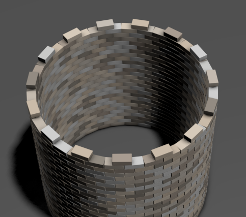 这些参数共同创建出塔的底部:以环形图案端对端放置的单行砖。