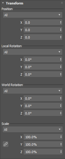 阵列修改器的“Transform”卷展栏提供了用于调整克隆在阵列中的位置、旋转和缩放的控件。
