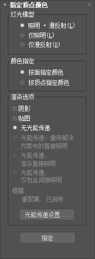 “顶点绘制”修改器也可以为顶点 alpha 和照明通道指定绘制值。这些通道分别影响顶点颜色的透明度和着色。