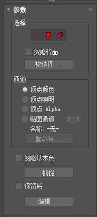 这些控件指定顶点绘制层影响的通道类型,以及要进行绘制的贴图通道编号。