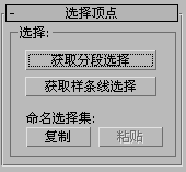 基于上一个“分段”或“样条线”选择来选择顶点。该选择会被添加到当前选择中。仅当“顶点”不是当前子对象层级时才可用。