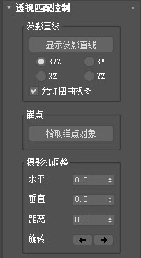 可以选择对象作为透视匹配的“锚点”。使用对象作为锚点时,透视匹配距离和旋转将使用该对象作为摄影机的轴点。