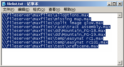 \\fileserver\maxfiles\*.max /s /b >c:\fileslist.txt