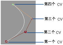 曲线中的第一个 CV 显示为方形,第二个显示为“U”,而不是十字。这有助于显示曲线的方向。