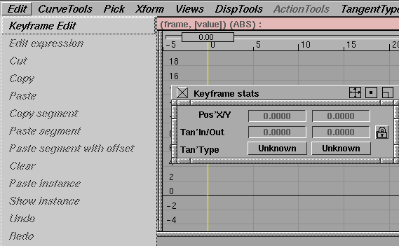 打开“Keyframe Stats”窗口,可以使用该窗口编辑各个关键帧的帧、值和切线。