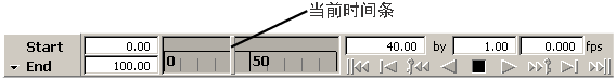 时间条右侧的第一个数字指示当前时间。可以通过单击该数字并键入新的帧时间,来更改当前帧。当前时间条将自动移至该时间。