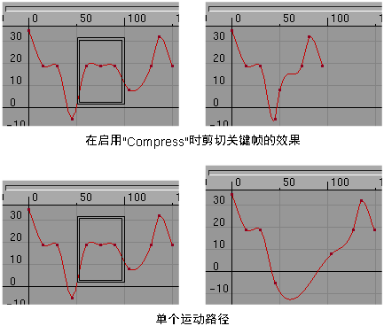 如果开始帧或结束帧处没有任何关键帧,将会在这些帧处插入关键帧,然后,开始帧和结束帧之间的所有关键帧都会被删除。