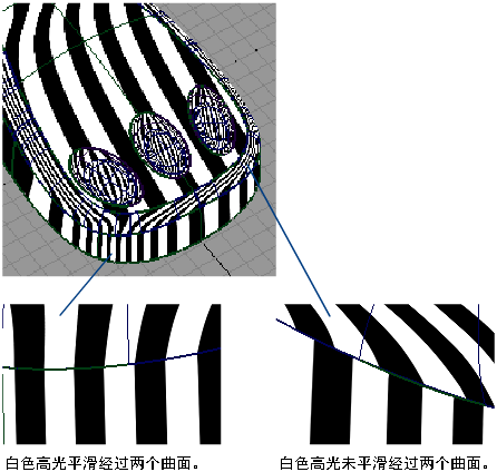 诊断着色显示中的某些工具,如“Horizontal/Vertical”,可根据模型曲面模拟光反射。在曲面上反射光是检查凹凸、凹痕或其他不规则体的一种很好的方法。反射还能查出任何未能平滑衔接的曲面。