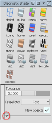 使用当前指定的诊断材质球自动对通过工具操作创建的新几何体进行着色显示。默认情况下,“New objects”处于启用状态。