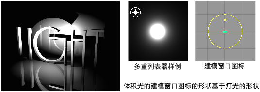 体积光可确定一个闭合体积,在该体积之内,所有对象均被照亮;而在该体积之外,体积光不会照亮任何对象。