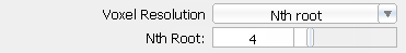 控制确定体素分辨率的方式。更改体素分辨率会影响内存需求量。只有经验丰富的用户才能调整“Nth root”、“X Res”、“Y Res”或“Z Res”值。默认设置为“Nth root”。