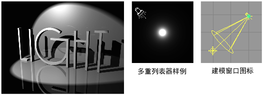 聚光灯仅从展开的圆锥体中的某个点向一个方向投射光线。