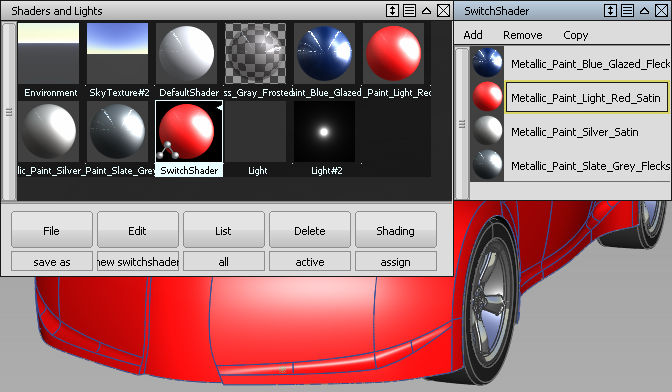 双击该切换材质球。此时显示“Switch Shader”窗口并列出选定的材质球。