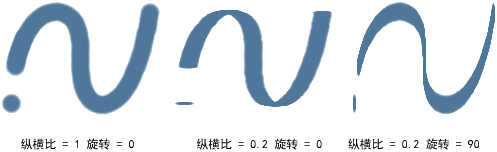 画笔的形状基于其纵横比。纵横比为 1 表示画笔笔迹点是圆形的。纵横比越低,画笔笔迹点越平坦。平坦笔迹点的角度基于画笔的“Rotation”。