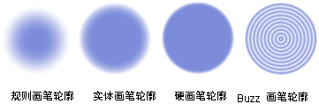 画笔的轮廓控制画笔笔迹点边缘的柔和度。
