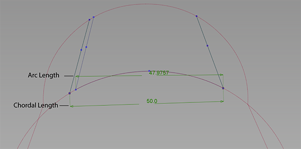 Chordal Length - 偏移距离基于输入和偏移输出之间的最短线性距离。如果需要线性偏移距离,则使用此选项。默认方法是“Chordal Length”。