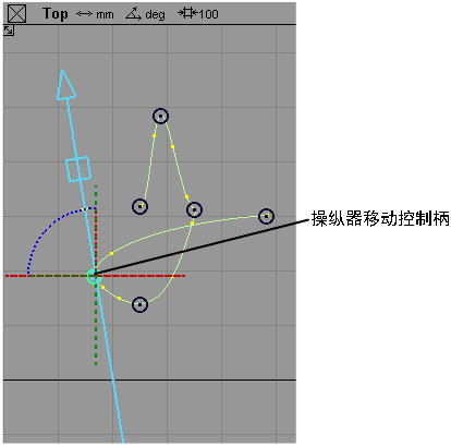 “Blend Curve Edit”工具有一个操纵器,使您能够移动您的曲线内的各个过渡点并修改其切线。该操纵器在点中心有一个移动控制柄(可将其拖动到新位置)以及其他控制柄(可用于调整切线长度和方向)。