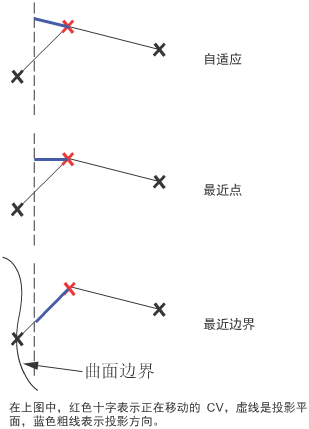 Closest boundary - 投影将沿外壳线朝着最近曲面边界的方向进行。