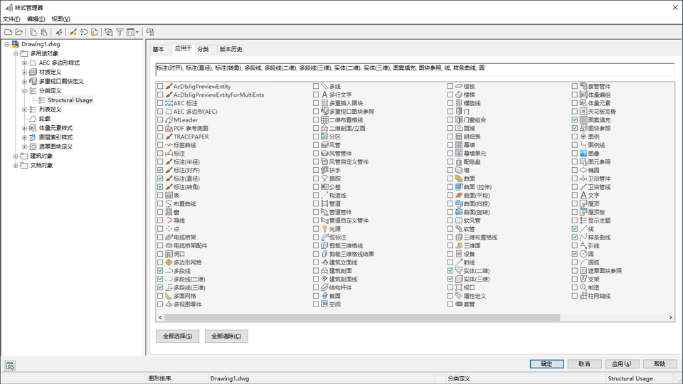 在 AutoCAD Architecture 和 AutoCAD MEP 2023 中(除了 AEC 对象),现在可以将分类定义应用于 AutoCAD 对象。