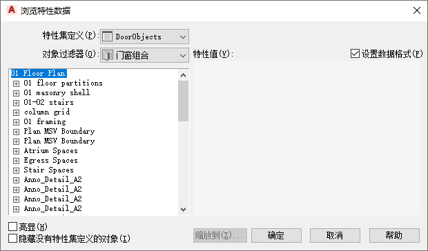 | 仅显示在某层上已附着所选特性集的那些对象 | 清除“隐藏没有特性集定义的对象”。 |