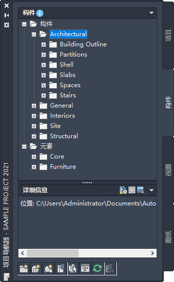 对于 AutoCAD Architecture 2023 toolset中的各个建筑项目,下列基本类别结构会显示在“项目导航器”选项板的“项目”选项卡中: