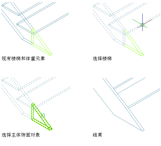 下图显示如何将体量元素用作要添加到梯边梁构件中的主体饰面。