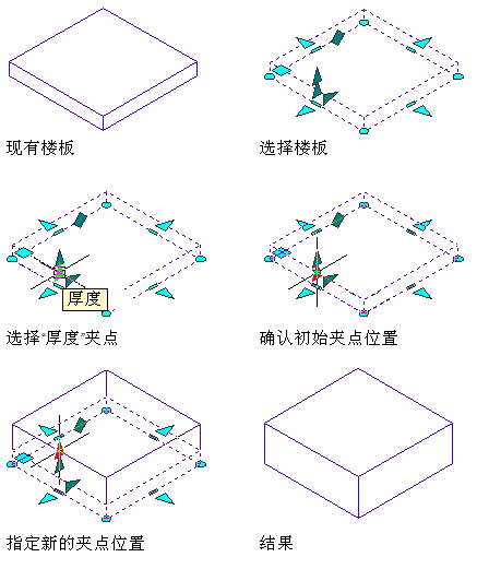 执行以下步骤可以在三维等轴测视图中修改楼板或屋顶板的厚度。
