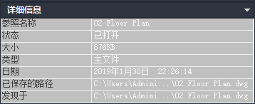 - 在“外部参照”对话框中,查看外部参照的详细信息: