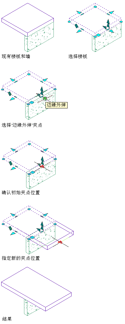 使用楼板/屋顶板边缘出挑夹点的步骤