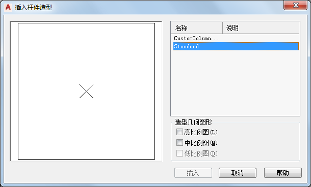在“插入杆件造型”工作表的右窗格中,选择一个自定义杆件造型。