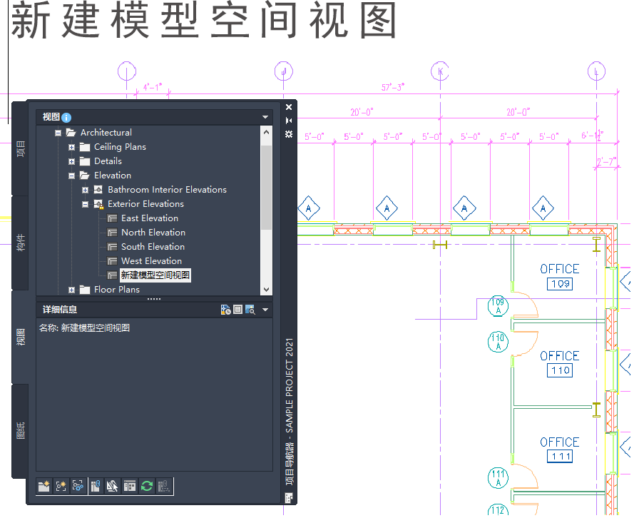 应保存默认视图样板,使其创建打开“模型”选项卡的图形。创建新的视图图形时,指定给它的所有构件都将参照到该视图图形中。如果样板打开时模型空间不处于活动状态,则建筑将参照到图纸空间中。
