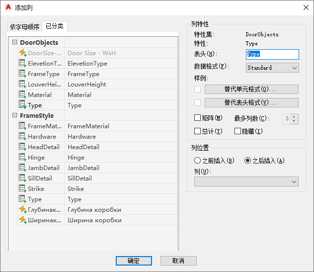 通过在明细表中将列拖动到新位置,可以修改该列的位置。