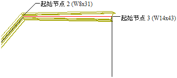 使用以下步骤可以通过为刚架杆件的第三个线段指定不同的起点和终点造型,以创建刚架的第二个梁。