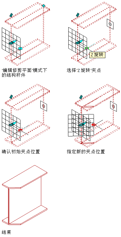 可以将任意多个修剪平面添加到结构杆件中。在将修剪平面添加到一个或多个结构杆件中时,需要定义修剪平面与被修剪结构杆件的相对位置。