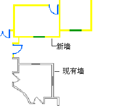 要实现此效果,可在一个构件中定义名为“Existing Walls”的显示配置,并将浅灰色指定给它。在项目的第一个阶段将构件参照到视图中时,对新墙使用常规显示配置。在之后的阶段将该构件参照到视图中时,就可以指定“现有墙”显示配置。