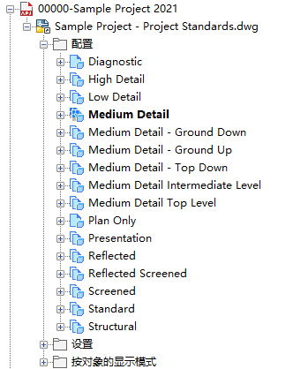标准显示设置在一个指定给项目的标准图形中组织。在将一组显示设置定义为项目标准设置并引入到项目图形中后,这些设置将具有指向标准的链接,并可与标准同步。通过相同的链接,项目图形中的显示设置也可以更新标准显示设置。