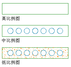 创建自定义造型时,可以定义三种不同的几何体(高比例图、中比例图和低比例图)来适应不同显示模式(例如“平面高比例图”、“平面”和“平面低比例图”)中的不同详图级别。可在绘图区域中完全使用线条来设置新造型的几何体,或者使用现有自定义造型定义作为样板,对其进行编辑来重新定义其任何几何体。