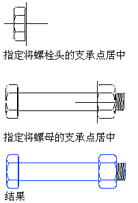 使用以下步骤可以插入螺栓构件(如果您需要指定螺栓头和螺母之间的距离)。在本例中,用于插入螺栓的工具的“视图”特性设置为“侧面”。如果设置为螺栓头或螺母,则系统不会提示您执行前两个步骤。