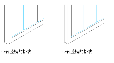 执行以下步骤可以从门窗组合中删除竖梃。可以创建其边缘宽度与深度为零的竖梃定义。相邻内嵌将延伸以填充竖梃所占据的空间。这是表示自承式玻璃的有效方法。