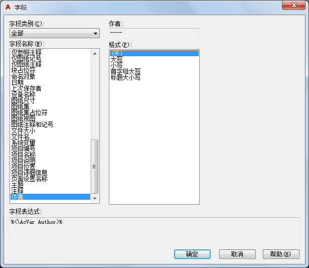 | 日期/时间、文档、超链接、对象、系统变量、Diesel 表达式或打印字段 | 请参见 AutoCAD 帮助中的“在文字中使用字段”。 |