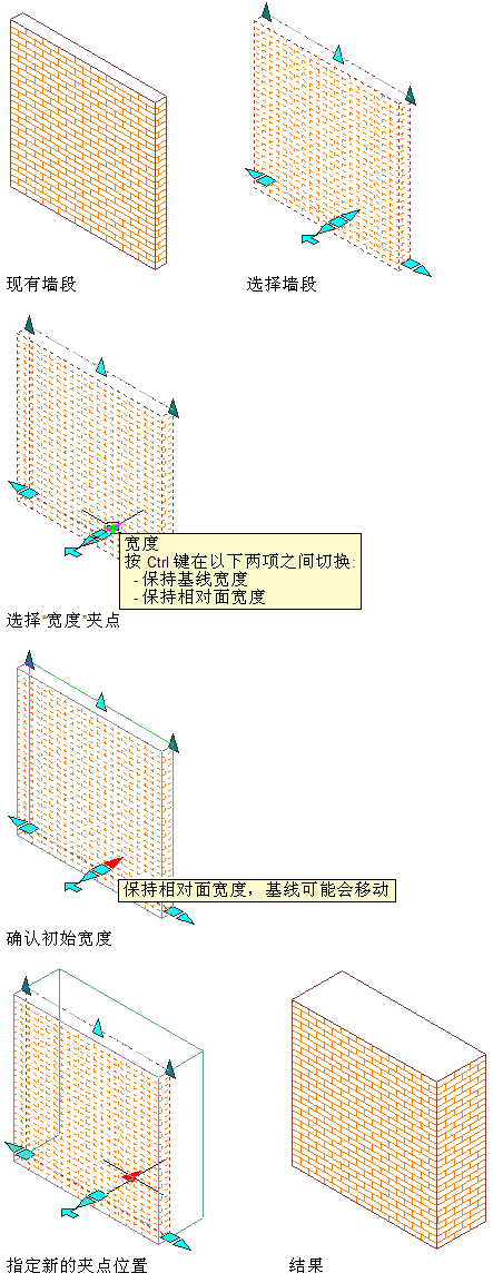 使用夹点修改墙宽度并保留墙的相对面