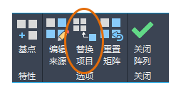 - 选择阵列对象,然后在“阵列”功能区上下文选项卡中单击“替换项目”。