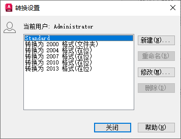 删除当前亮显的转换设置。不能删除“标准”转换设置。