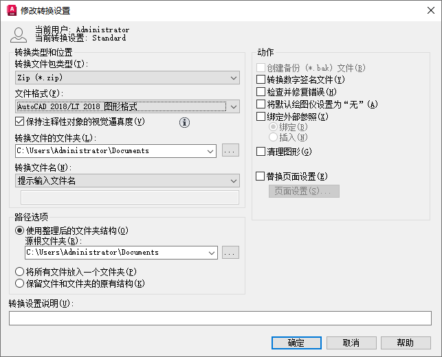 如果此字段保持不变,则将在包含第一个指定的图形文件的文件夹中创建转换文件。在图纸集上下文中,将在包含图纸集数据 (DST) 文件的文件夹中创建转换文件。
