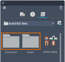 - 指定包含这些块的云存储文件或文件夹。使用此方法可跨设备共享块。位于云中的块库会在该选项板中进行相应指示。