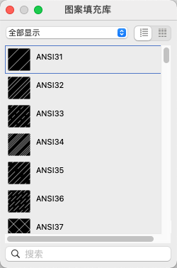 显示所有预定义和自定义图案以及渐变填充图案的预览图像。