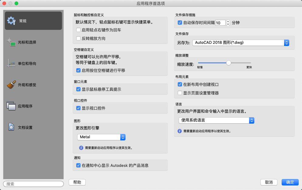 保存间隔分钟数:在“自动保存”为开的情况下,指定多长时间保存一次图形。(SAVETIME 系统变量)
