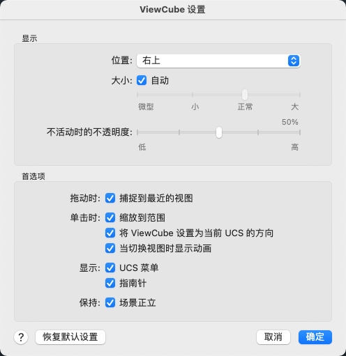 应用 ViewCube 工具的默认设置。