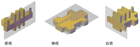 新截面对象与图形中所有三维对象的三维范围的中心点相交。将其放置在选定的正交平面上。活动截面已打开。