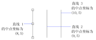 如果在使用定点设备选择多个复制点时按住 Ctrl 键,图形光标将捕捉到基于选定的最后两点的偏移点。在下面的插图中,直线 1 的中点位于坐标 (8,5)。根据该中点,使用 Ctrl 键和“拉伸”夹点模式复制直线 2,其中点位于坐标 (9,5)。第三条直线将捕捉到基于坐标值 (10,5) 的偏移。